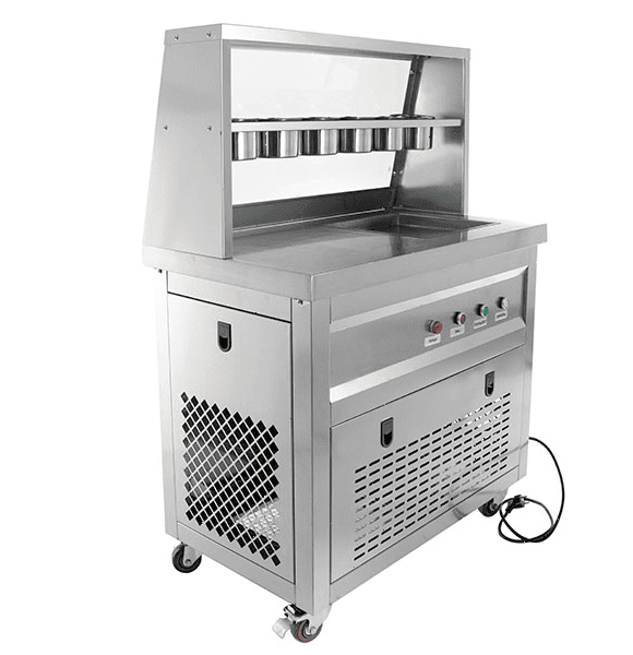 Оборудование для его приготовления представляет собой холодильную систему, заключенную в металлический корпус с рабочей поверхностью для «жарки» десерта при минусовой температуре.