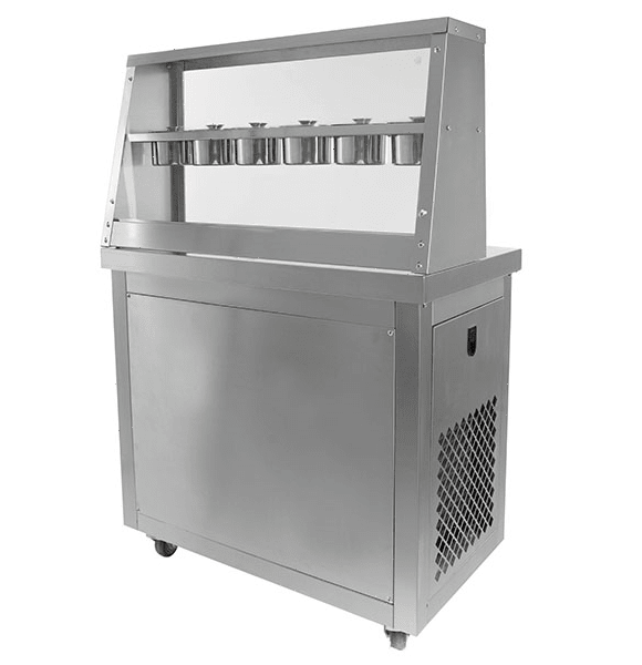 Оборудование для его приготовления представляет собой холодильную систему, заключенную в металлический корпус с рабочей поверхностью для «жарки» десерта при минусовой температуре.